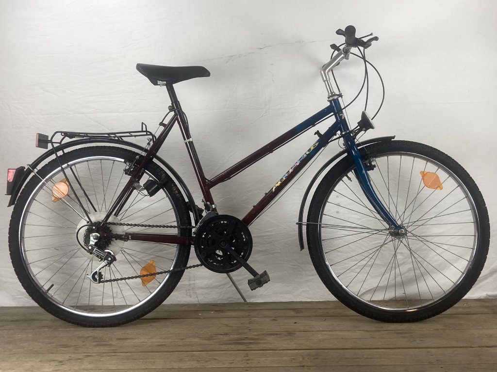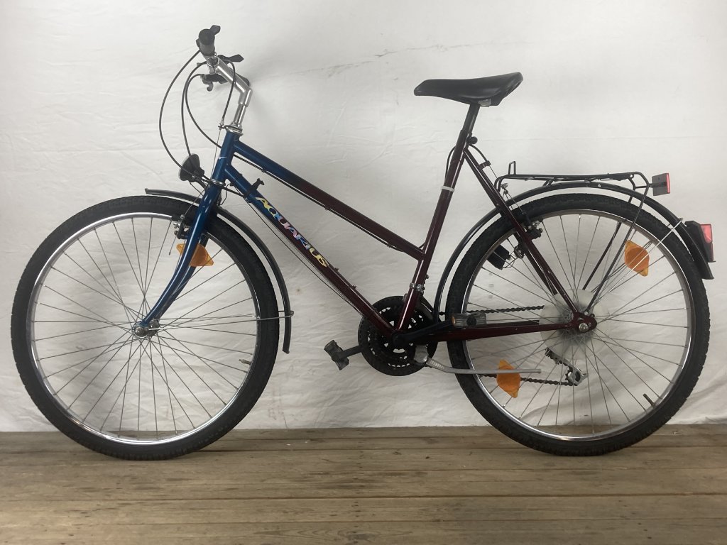 Aquarius Team 26-os kerékméretű, acél vázas, Shimano SIS 3 x 6 sebességes váltóval, elől-hátul cabti fékkel, dinamós világítással, sárvédővel csomagtartóval szerelt mountain bike kerékpár.