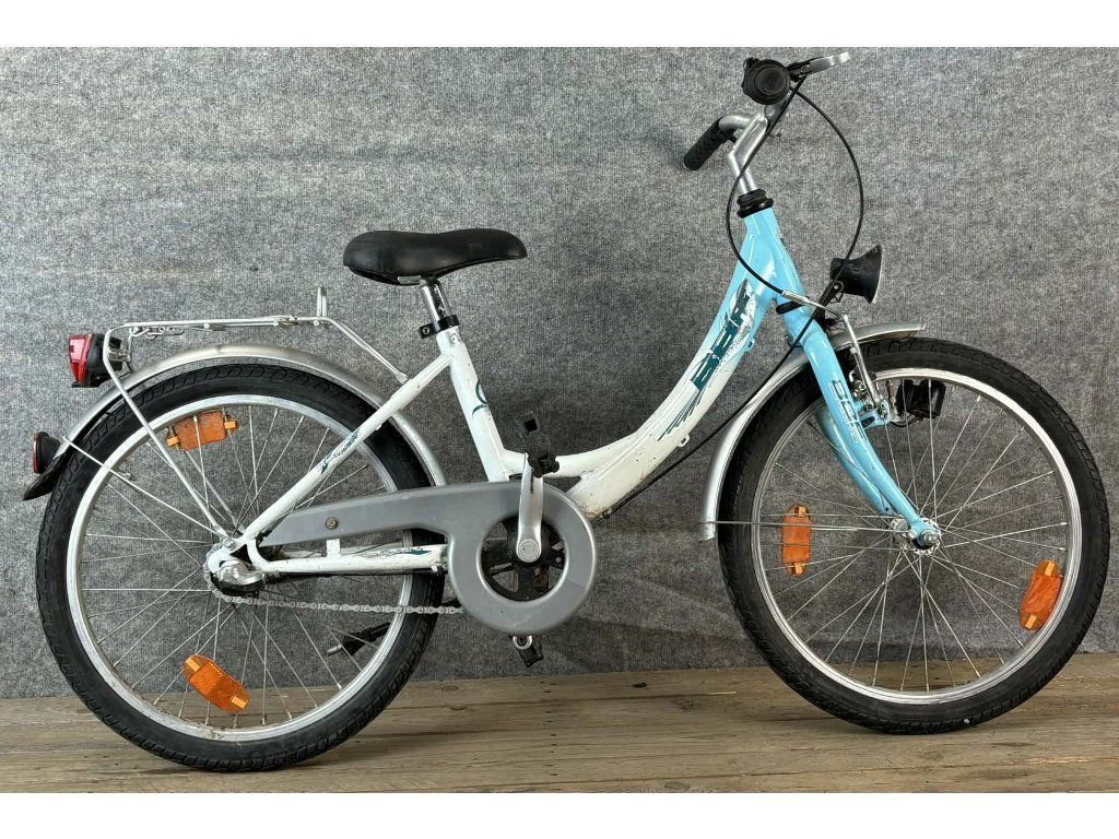 BBF 20-as kerékméretű, acél vázas, Shimano Nexus 3 sebességes agyváltóval, elől"V"-fékkel, hátul kontrafékkel, agydinamós világítással, sárvédővel, csomagtartóval felszerelt gyermekkerékpár.