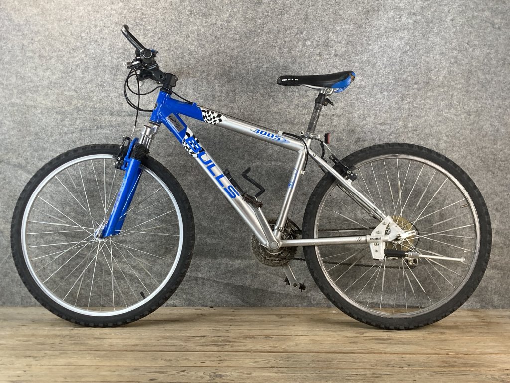 Bulls 3005,26-os kerékméretű, alumínium vázas, Shimano Acera 3 x 7 sebességes váltóval, Shimano Acera hajtóművel, elől- hátul "V" fékkel, állítható kormánybefogadóval, teleszkópos első villával szerelt mountain bike.