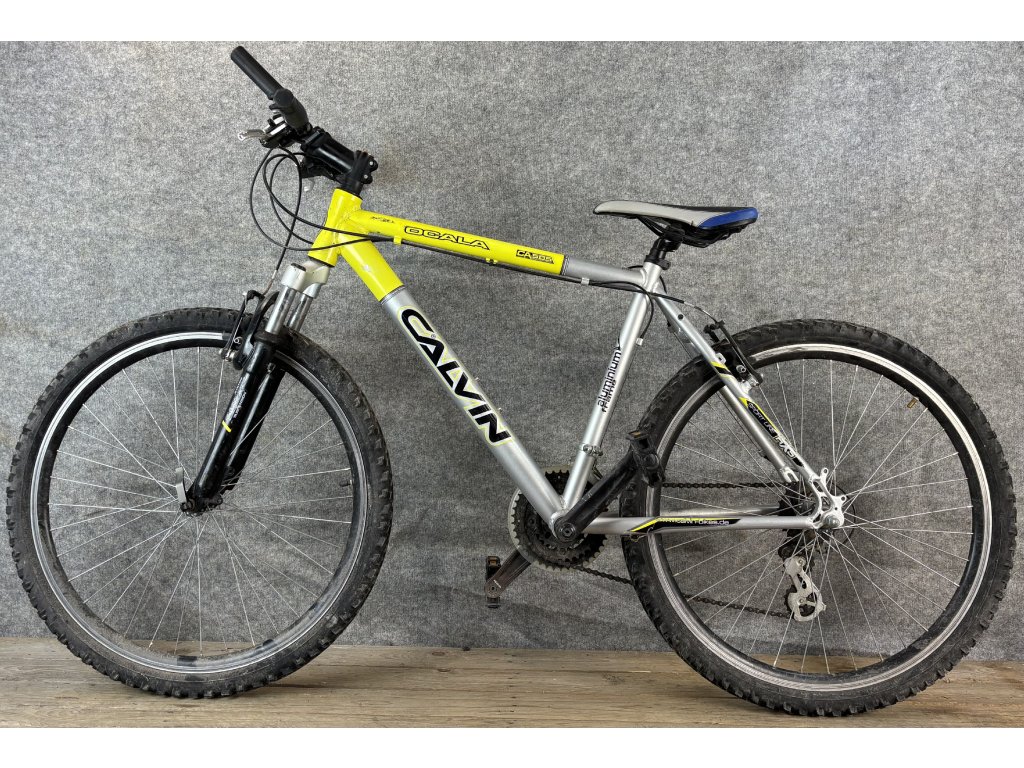 Calvin Ocala 26-os kerékméretű, alumínium vázas, Shimano Acera 3 x 6 sebességes váltóval, elől- hátul "V"fékkel, Shimano hajtóművel, teleszkópos első villával szerelt mountain bike