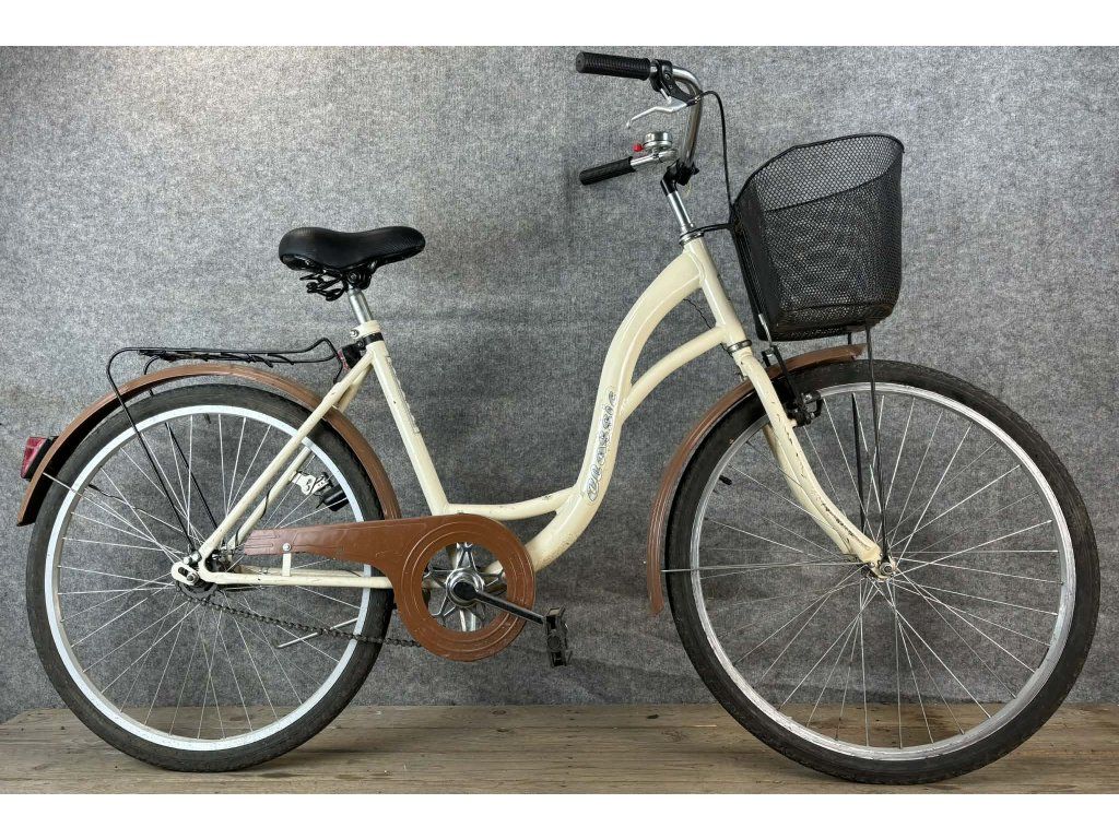 Classic 28-as kerékméretű, acél vázas, egysebességes, elől "V" fékkel, hátul kontrafékkel, sárvédővel, csomagtartóval és kosárral szerelt city kerékpár.