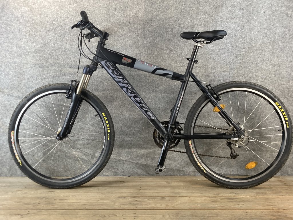 Corratec X-vert Motion 26-os kerékméretű, alumínium vázas, Shimano Deore LX 3 x 8 sebességes váltóval, elől-hátul " V " fékkel, lockolható teleszkópos első villával szerelt mountain bike