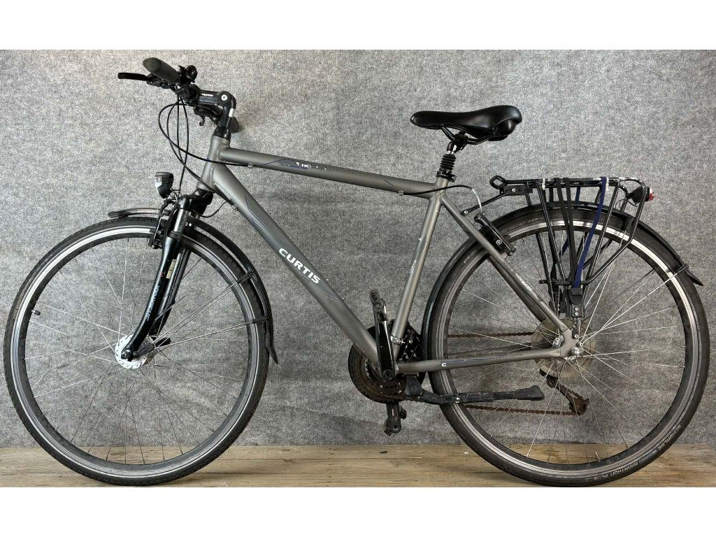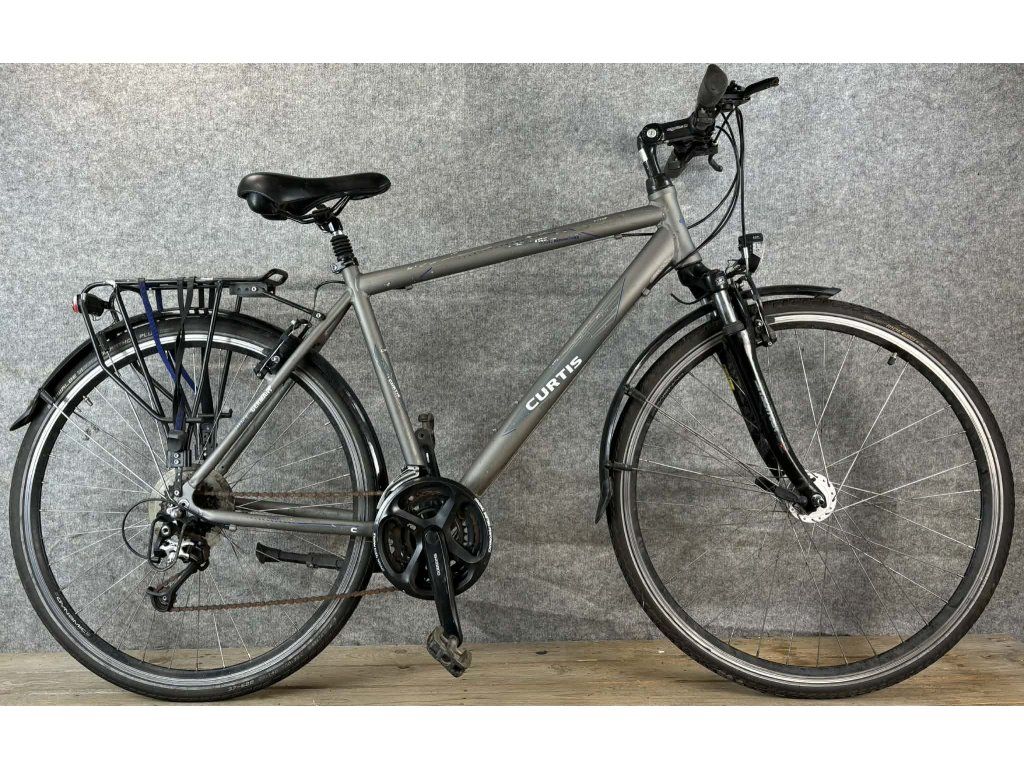 Curtis 28-as kerékméretű, alumínium vázas, Shimano Deore XT 3 x 8 sebességes váltóval, elől- hátul "V" fékkel, rugós üléscsővel, dinamós világítással, sárvédővel, csomagtartóval szerelt trekking kerékpár.