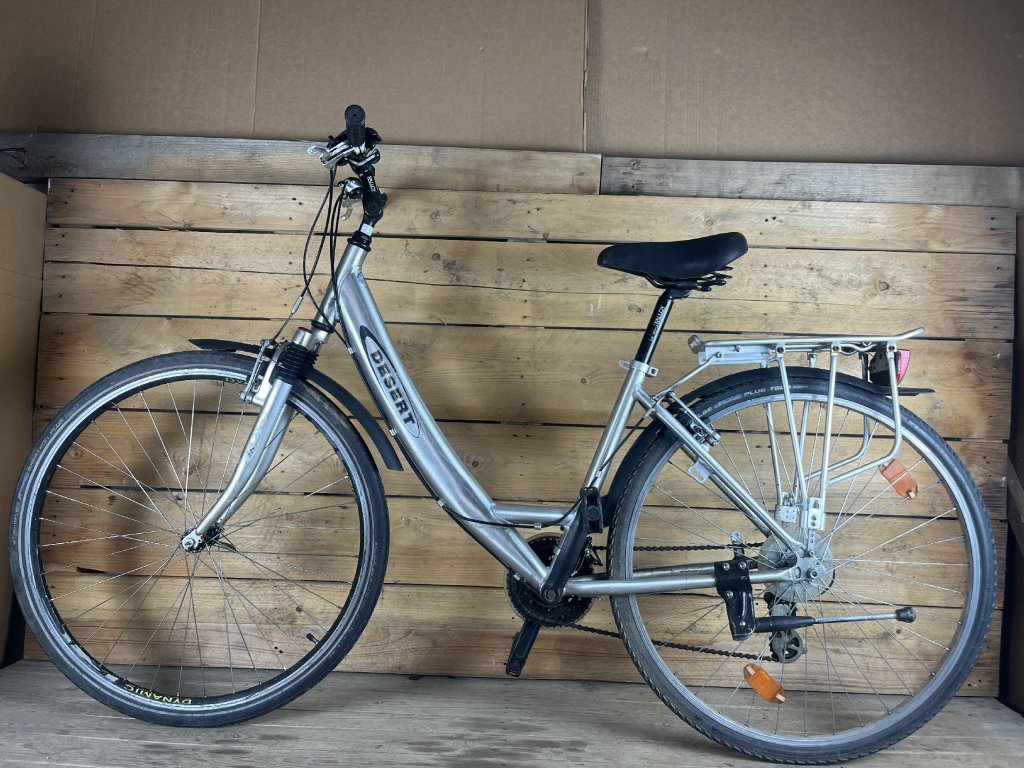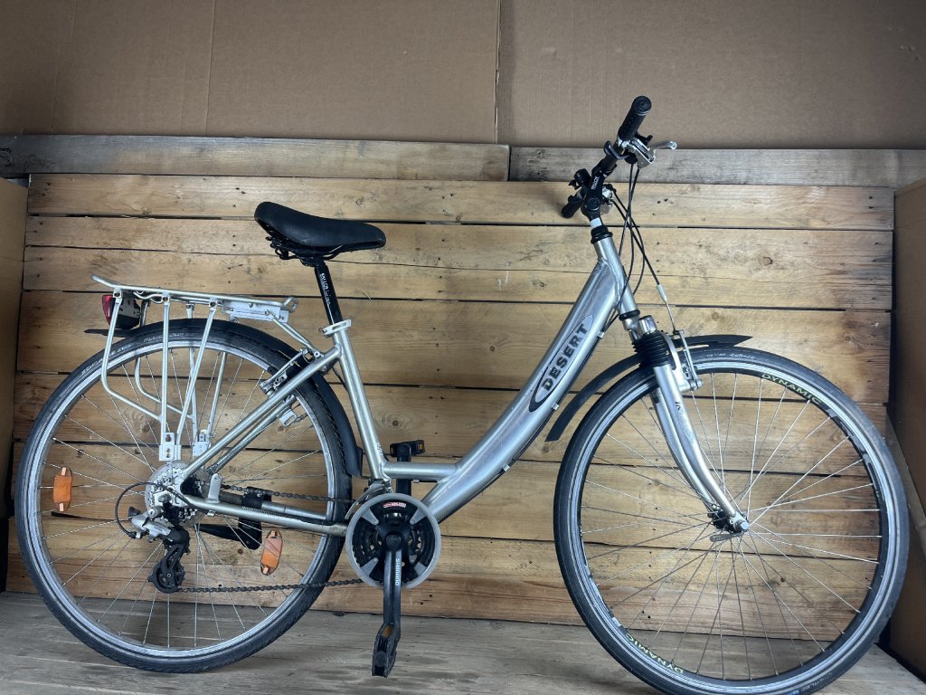 Desert 28-as kerékméretű, alumínium vázas, Shimano Acera 3 x 8 sebességes váltóval, elől-hátul "V" fékkel, Shimano hajtóművel, első teleszkóppal, erősített kerekekkel, csomagtartóval és sárvédővel szerelt mountain bike.