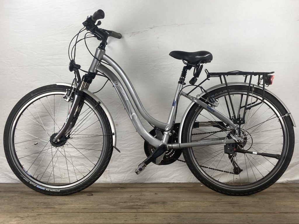 Diamant Ubari 26-os kerékméretű, alumínium vázas, Shimano Deore 3 x 8 sebességes váltóval, Magura hidraulikus felnifékkel, teleszkópos első villával, Shimano hajtóművel, agydinamós világítással, erősített kerekekkel, rugós üléscsővel szerelt városi kerékpár.