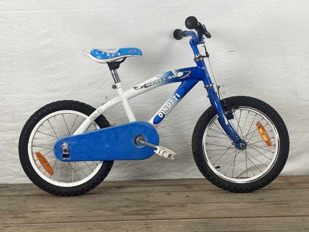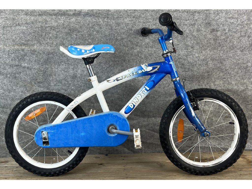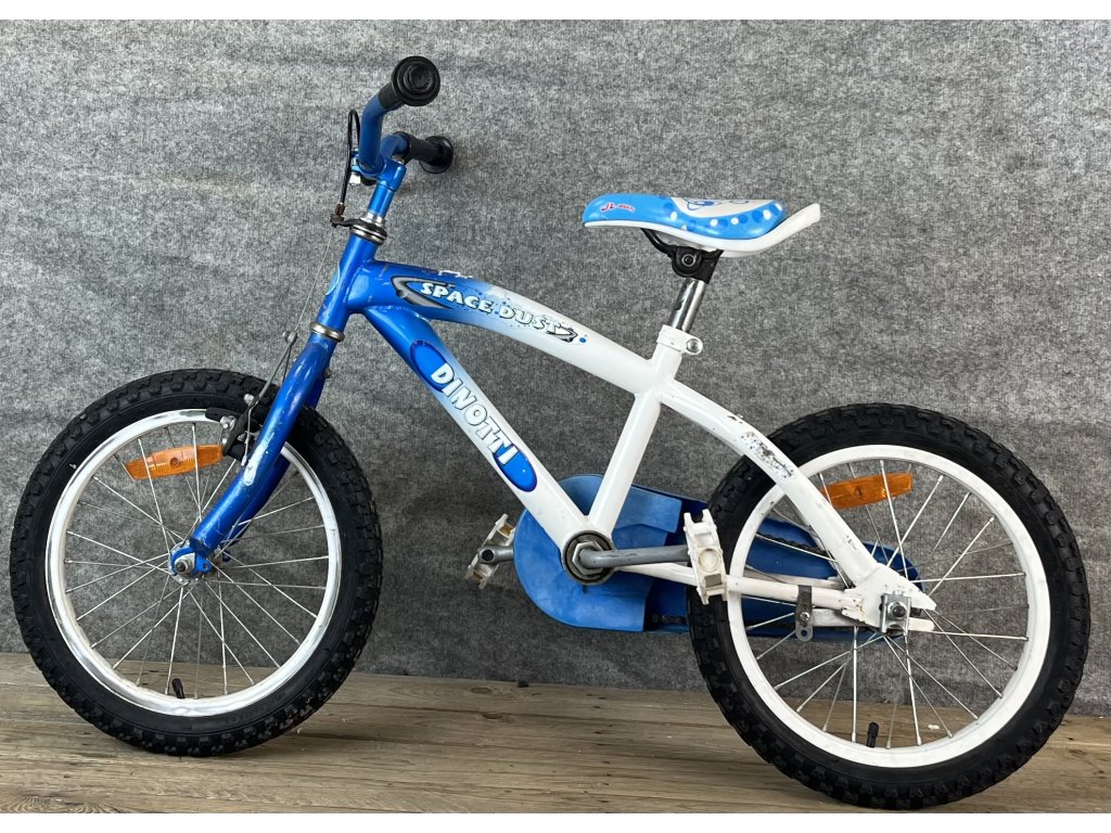 Dinotti Space Dust 16-os kerékméretű, elől canti fékkel, hátul kontrafékkel szerelt, acélvázas gyerekkerékpár.