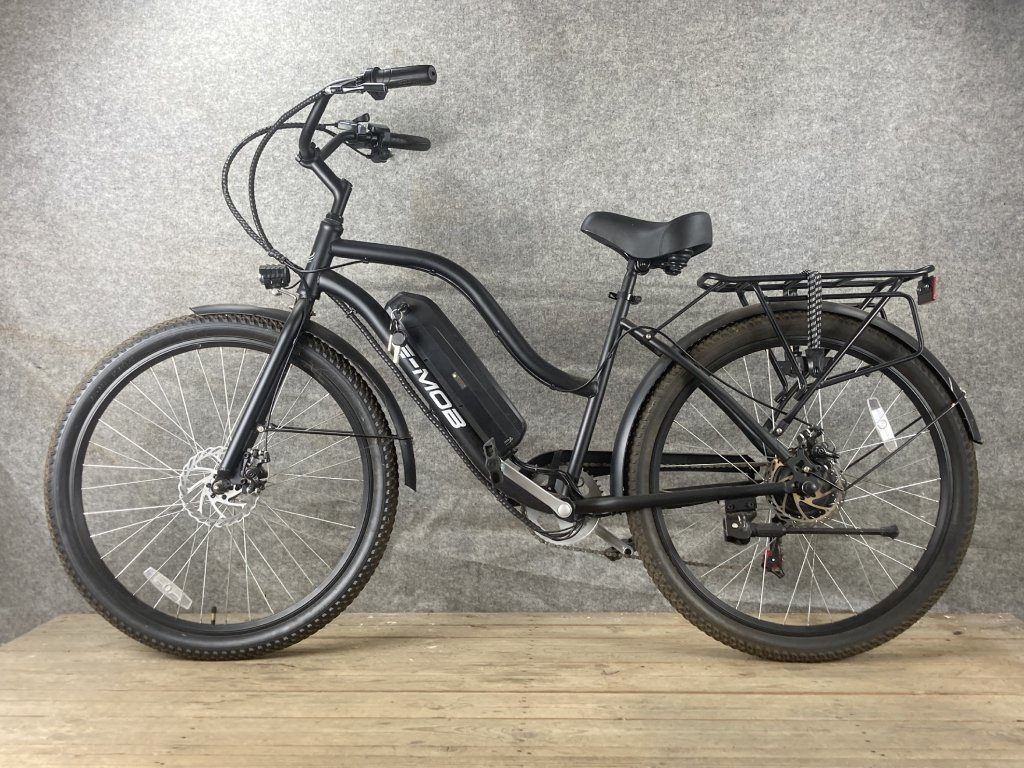 A Polymobil által gyártott E-MOB Cruiser elektromos kerékpár. Új, bemutató- és teszt kerékpár volt. 11. km-ert futott összesen. Shimano 6 sebességes váltóval, bowdenes tárcsafékkel, akkumuláétorról működtetett világítással szerelt. 36 V-os lítium akkumulátor, kivehető, 35 km megtételére képes. Pedelec és gázkarral is működtethető. Motor teljesítmény 250 W