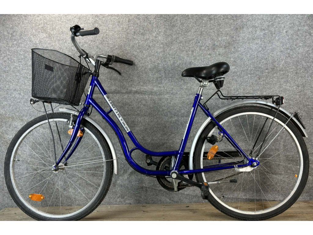 Eurostar 28-as kerékméretű, acél vázas, Sachs 3 sebességes agyváltóval, elől cantifékkel és hátul kontrafékkel, sárvédővel, csomagtartóval és kosárral szerelt városi kerékpár.