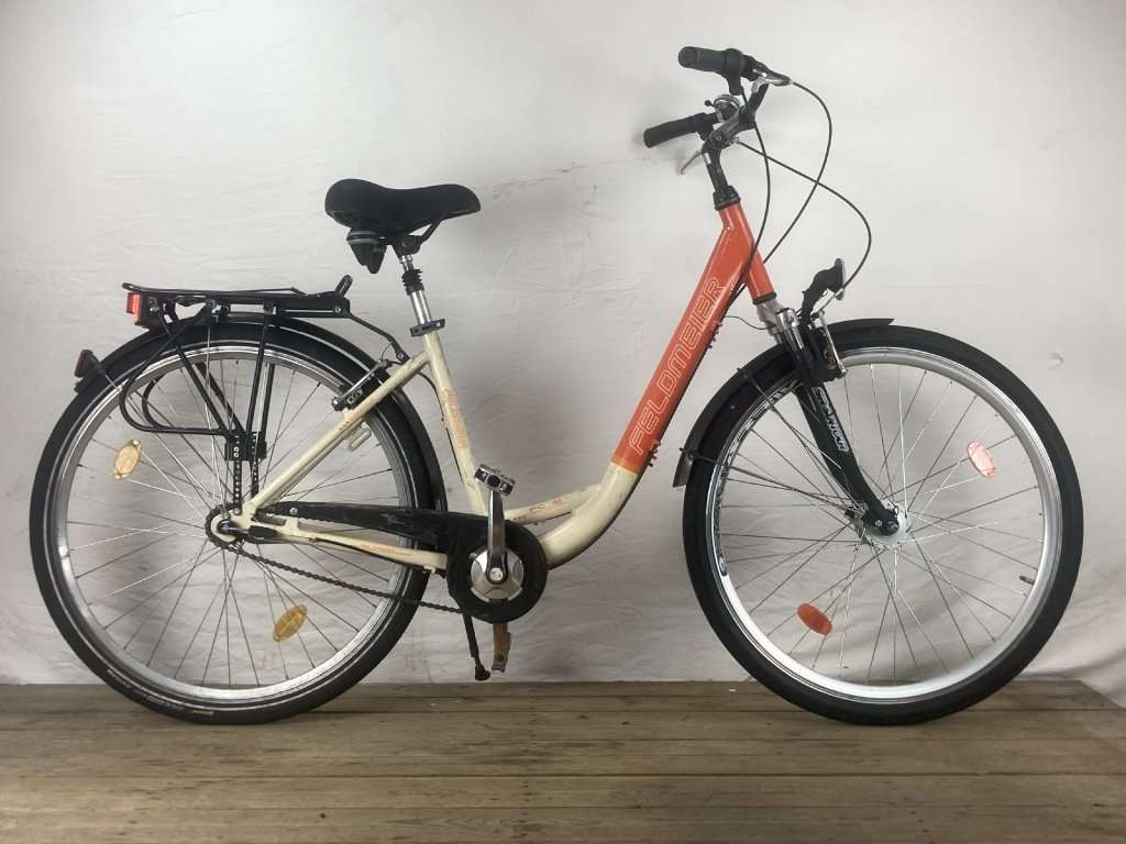 Feldmeier FC 51 28-as kerékméretű, alumínium vázas, Sram T3 7 sebességes agyváltóval, elől "V" fékkel és hátul kontrafékkel,rugós üléscsővel, csomagtartóval és sárvédővel city kerékpár.