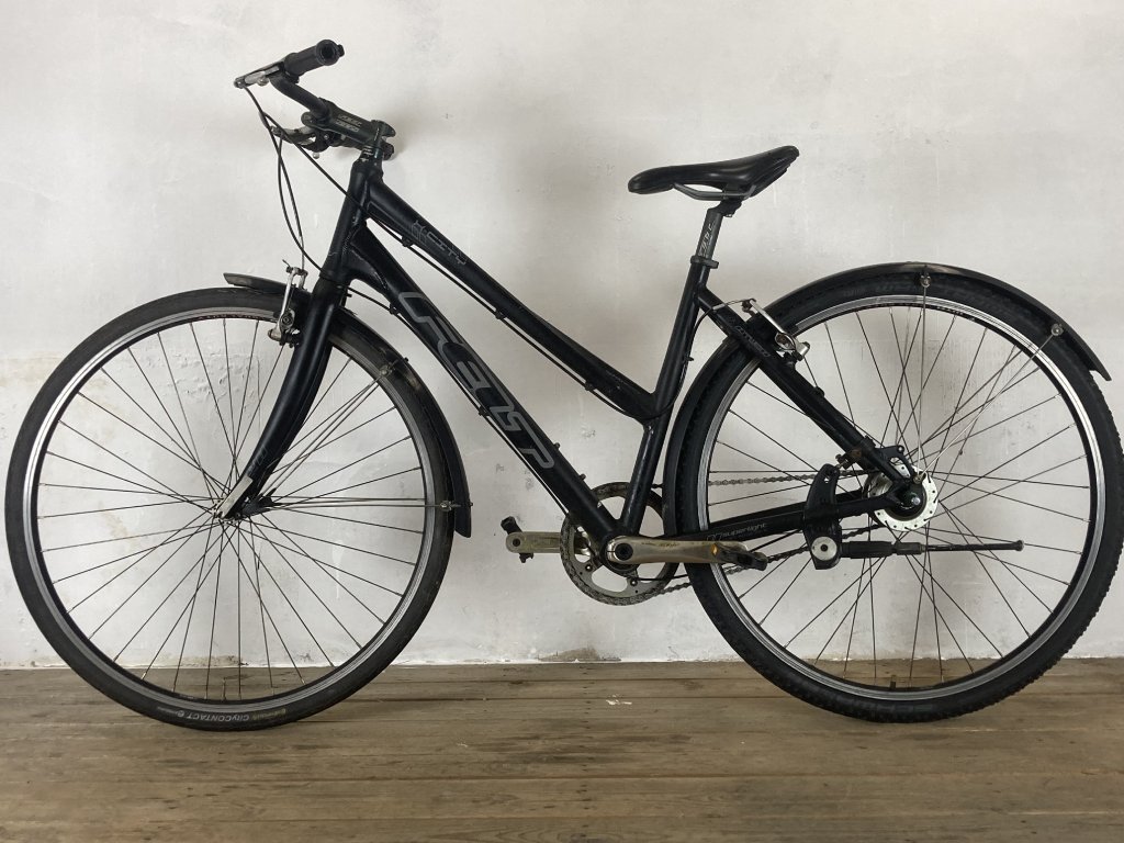 FELT X-city 2, 28-as kerékméretű, könnyű alumínium vázas, Shimano Nexus 8 sebességes agyváltóval, elől- hátul Shimano "V" fékkel, Shimano Alfine integrált hajtóművel, erősített kerekekkel szerelt cross trekking kerékpár.