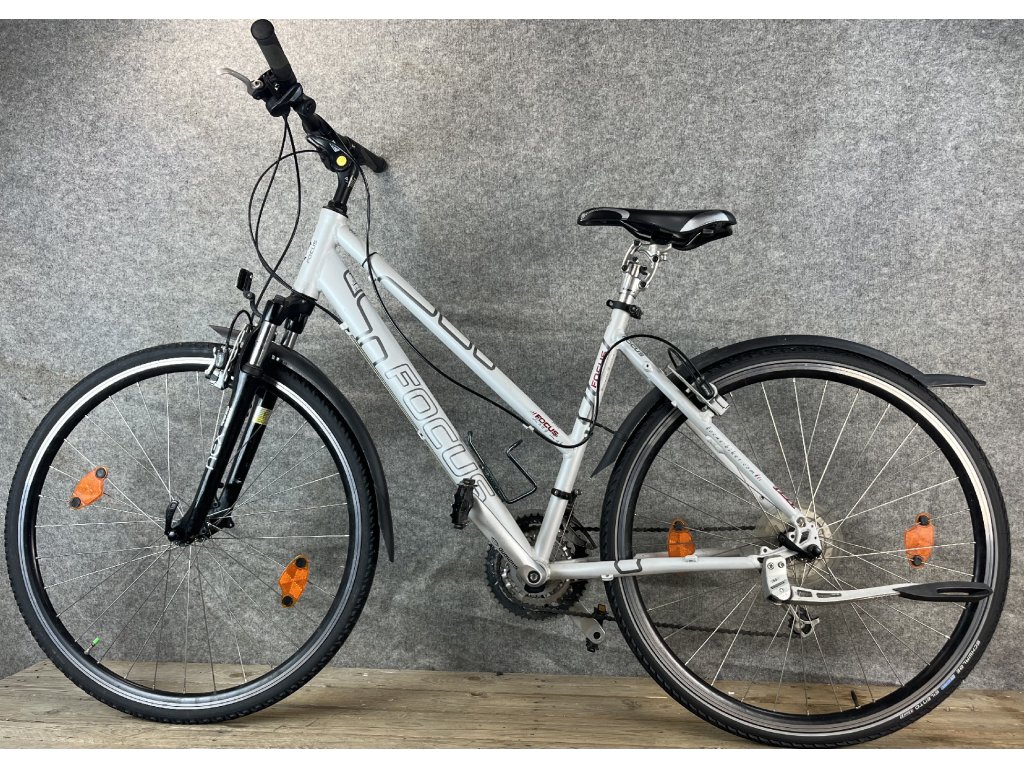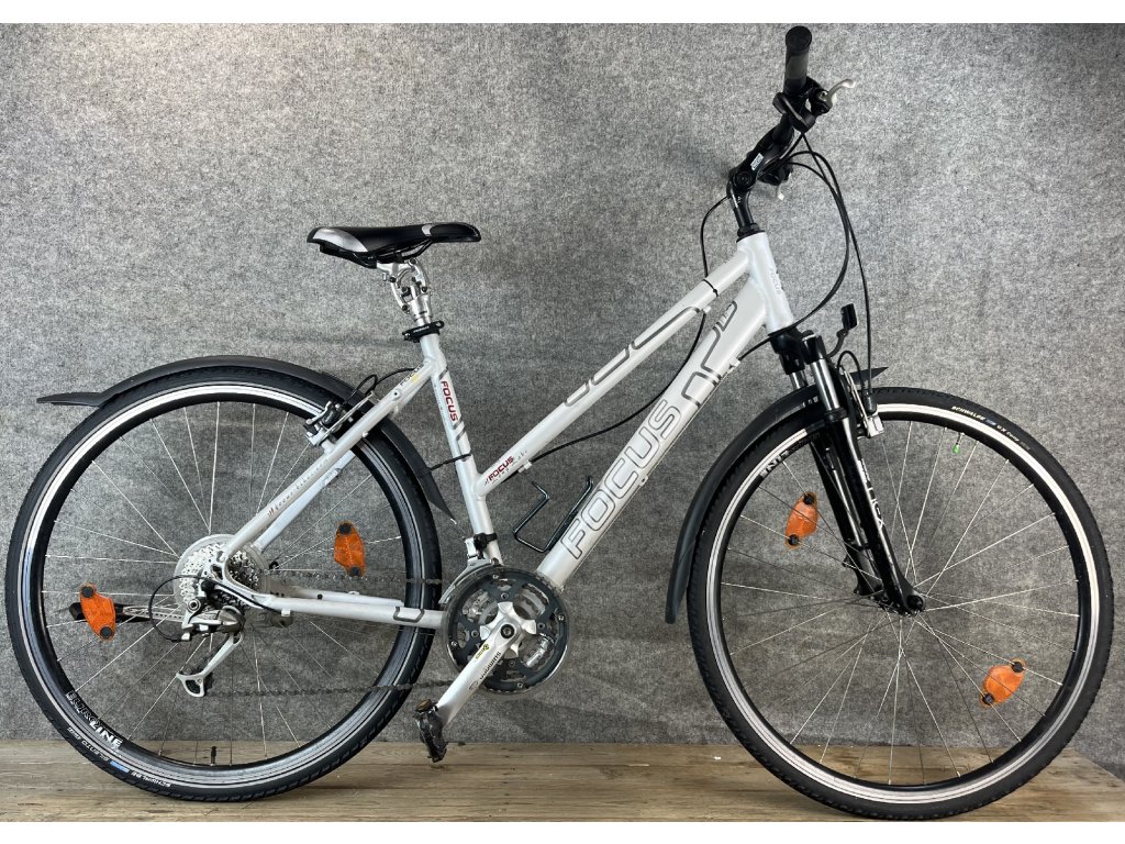 Focus Long Lake 28-as kerékméretű, alumínium vázas, Shimano Deore 3 x 9 sebességes váltóval, elől-hátul Magura hidraulikus felnifékkel, erősített kerekekkel, lockolható teleszkópos első villával, rugós üléscsővel, állítható kormánybefogóval szerelt trekking kerékpár.