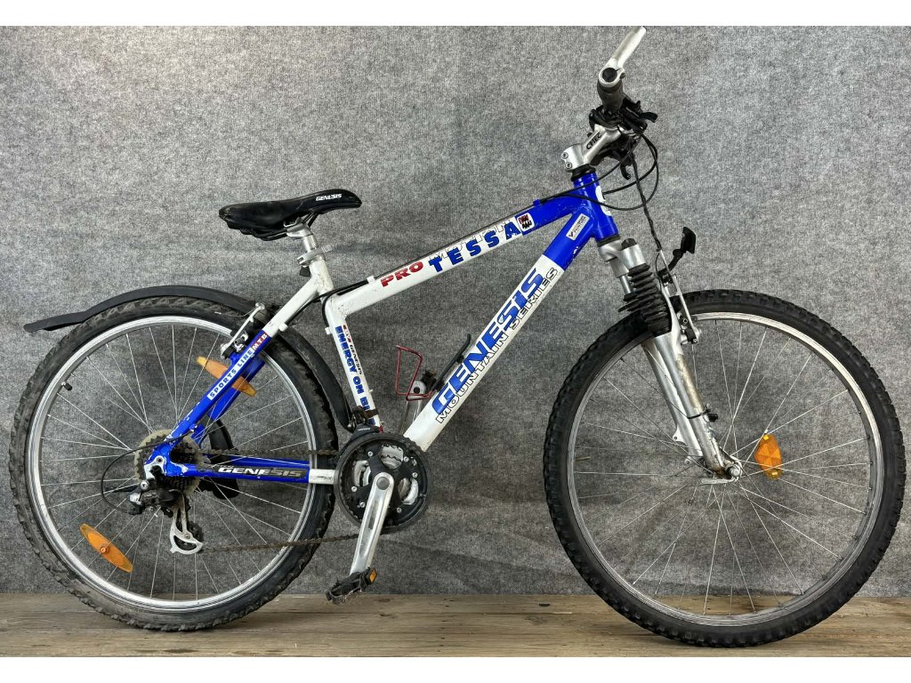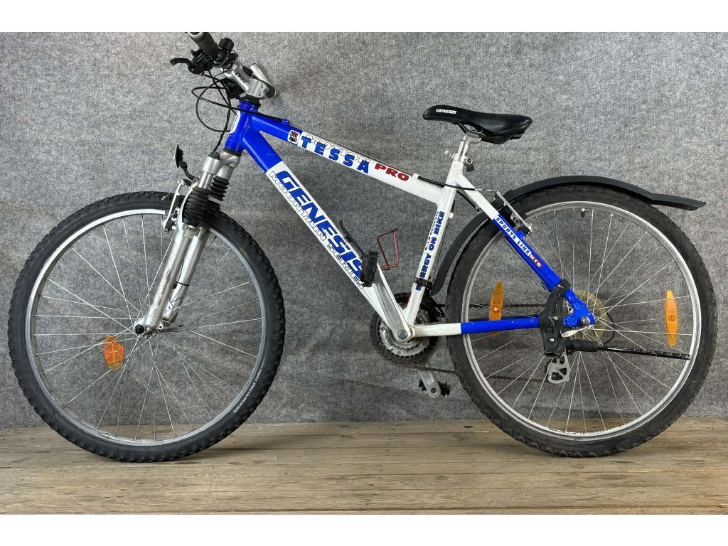 Genesis Tessa 26-os kerékméretű, alumínium vázas, Shimano Acera 3 x 8 sebességes váltóval, elől- hátul "V" fékkel, Shimano hajtóművel és hátul sárvédővel szerelt mountain bike