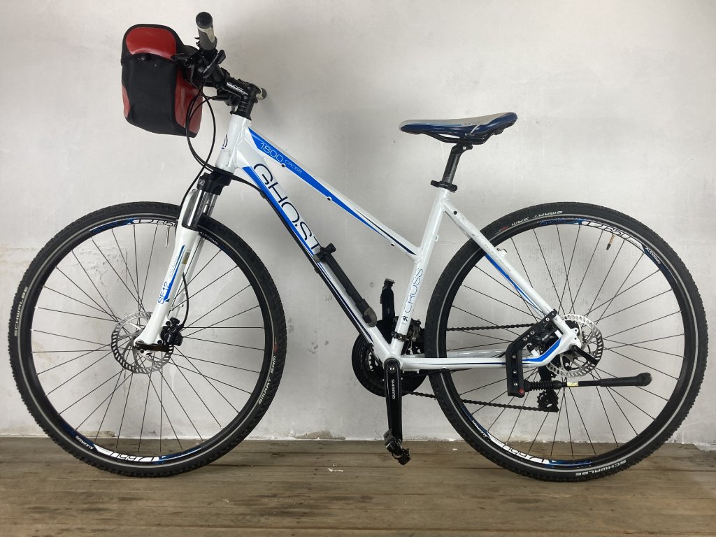 Ghost 1800 Cross Lady 28-as kerékméretű, alumínium vázas, Shimano Alivio 3 x 8 sebességes váltóval, elől-hátul Tektro hidraulikus tárcsafékkel, SR Suntour lockolható első teleszkóppal, Shimanó hajtóművel, kormánytáskával, vázra szerelt pumpával szerelt mountain bike kerékpár.