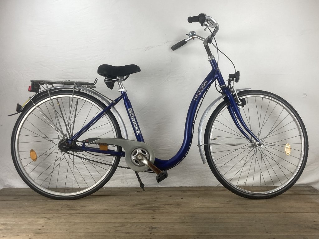 Göricke Pagoba 28-as kerékméretű, acél vázas, Sram S7 7 sebességes agyváltóval, elől "V" fékkel és hátul kontrafékkel, dinamós világítással, csomagtartóval és sárvédővel szerelt city kerékpár.