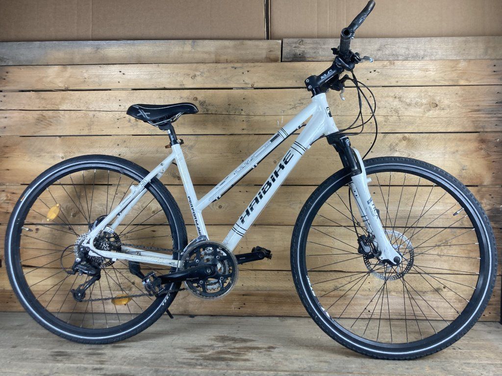 Haibike Lana 28-as kerékméretű, alumínium vázas, Shimano hidraulikus tárcsafékkel, Shimano Deore 3 x 9 sebességes váltóval, SR Suntour lockolható első teleszkóppal, Shimano FC-M443 hajtóművel, erősített kerekekkel szerelt cross trekking kerékpár