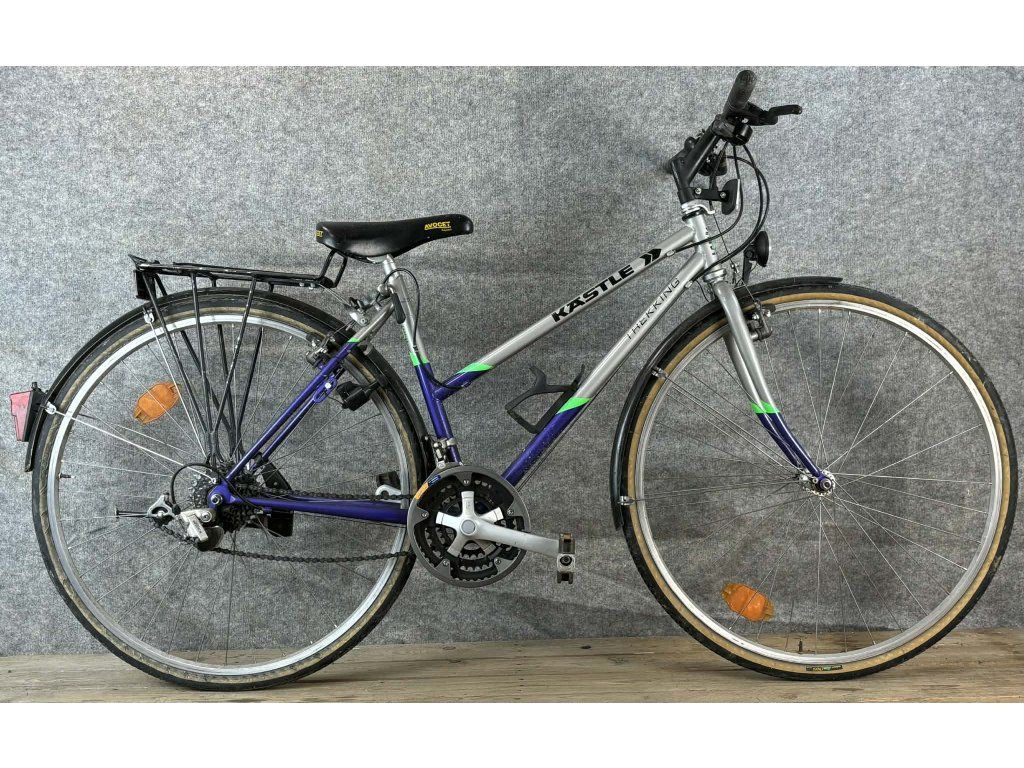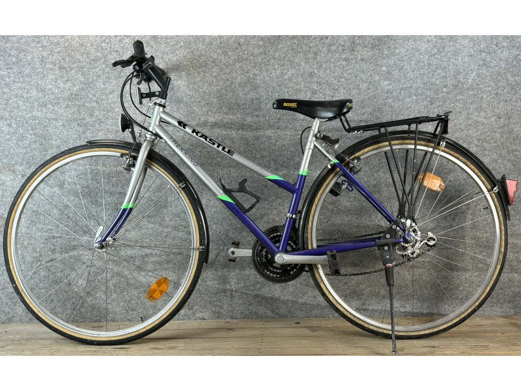 Kastle 28-as kerékméretű, acél vázas, Shimano 200CX 3 x 7 sebességes váltóval, elől- hátul cantifékkel, dinamós világítással, sárvédővel, csomagtartóval szerelt trekking kerékpár.