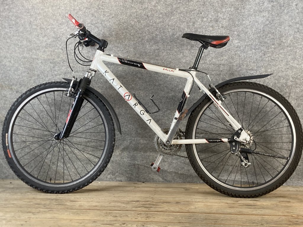 Katarga Dallas 26-os kerékméretű, alumínium vázas, Shimano SIS 3 x 8 sebességes váltóval, elől-hátul Shimano "V"fékkel, teleszkópos első villával, Shimanó hajtóművel szerelt mountain bike kerékpár.
