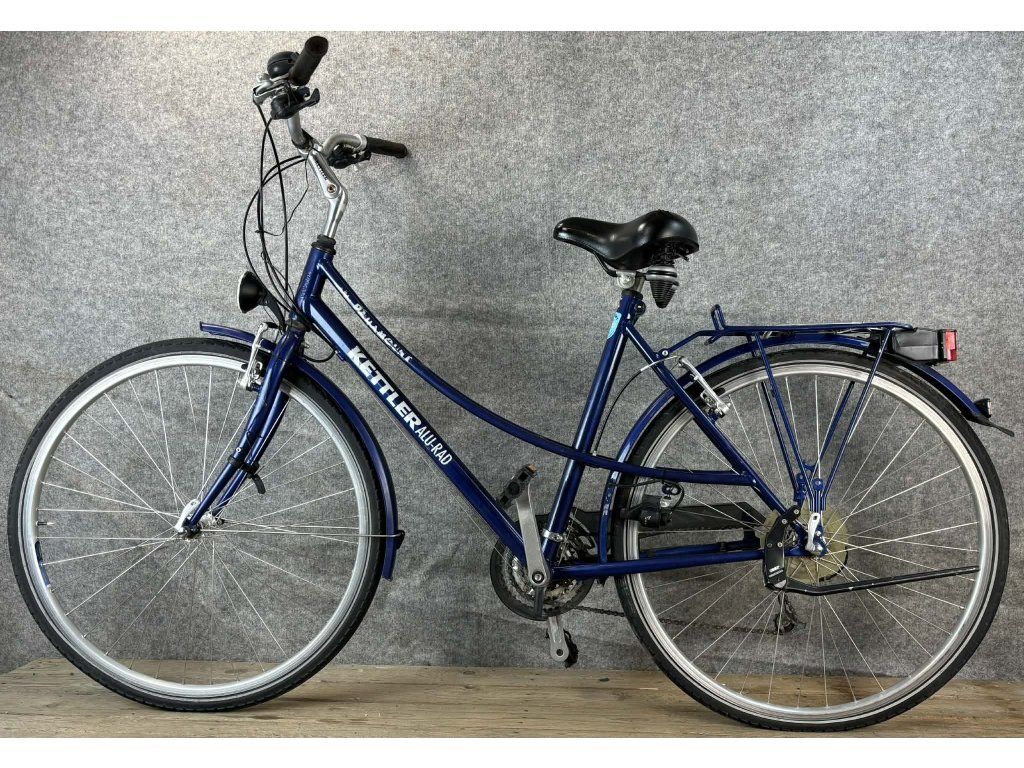 Kettler Alu-Rad 28-as kerékméretű, alumínium vázas, Shimano Deore 3 x 8 sebességes váltóval, elől-hátul "V" fékkel, dinamós világítással, sárvédővel, csomagtartóval szerelt city kerékpár.