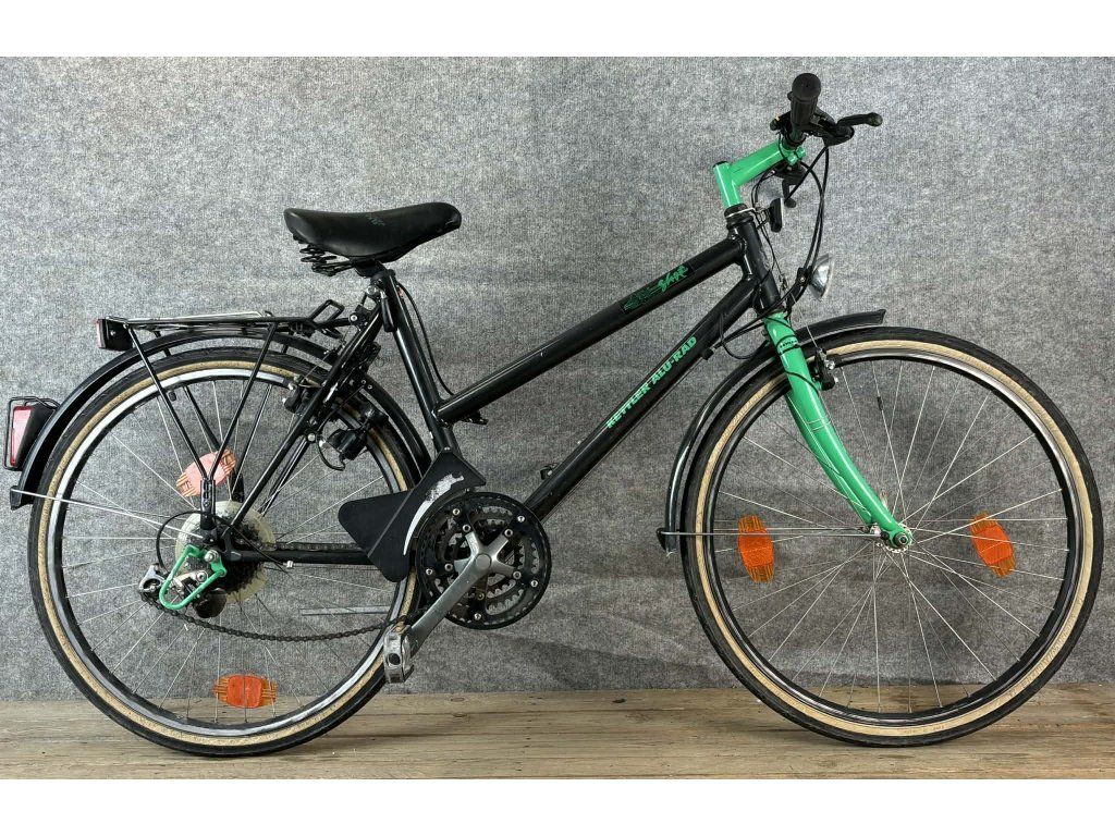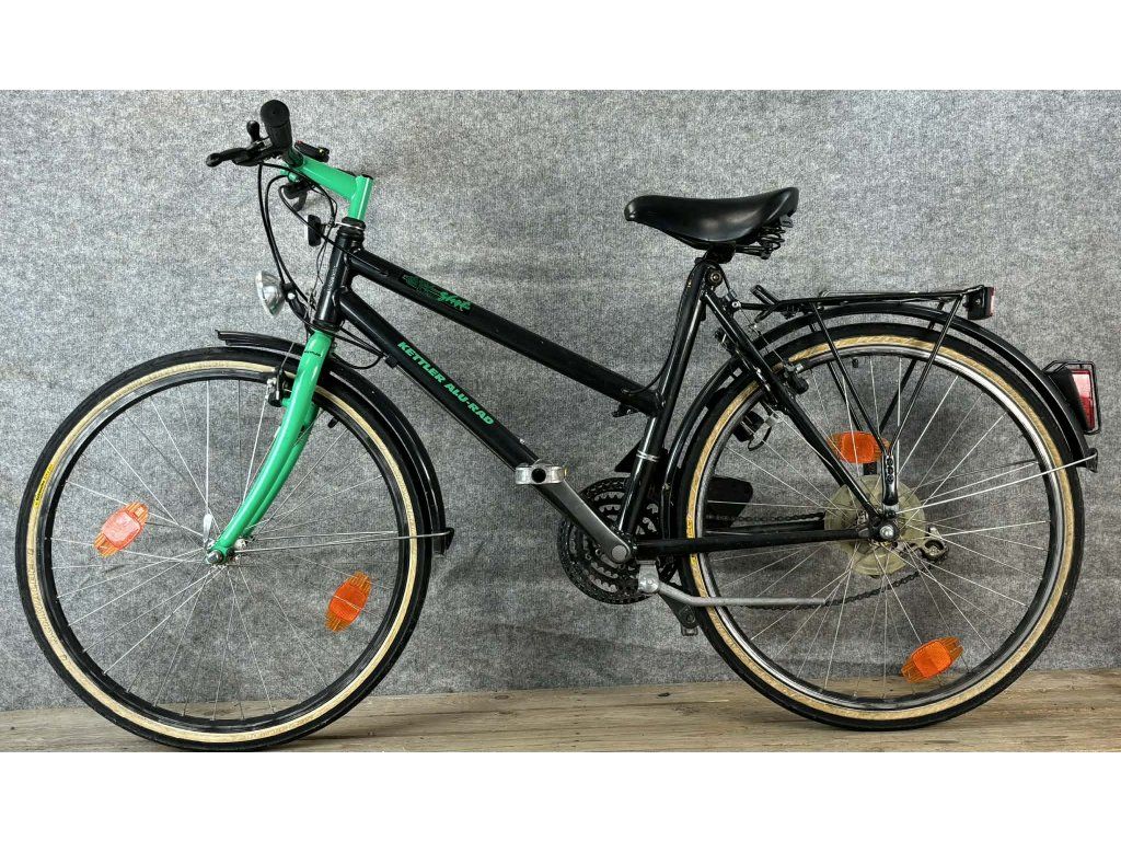 Kettler Alu-Rad 28-as kerékméretű, alumínium vázas, Shimano 200GS 3 x 7 sebességes váltóval, cantifékkel, dinamós világítással, sárvédővel, csomagtartóval szerelt city kerékpár.