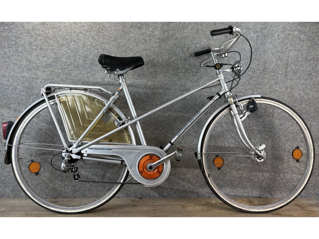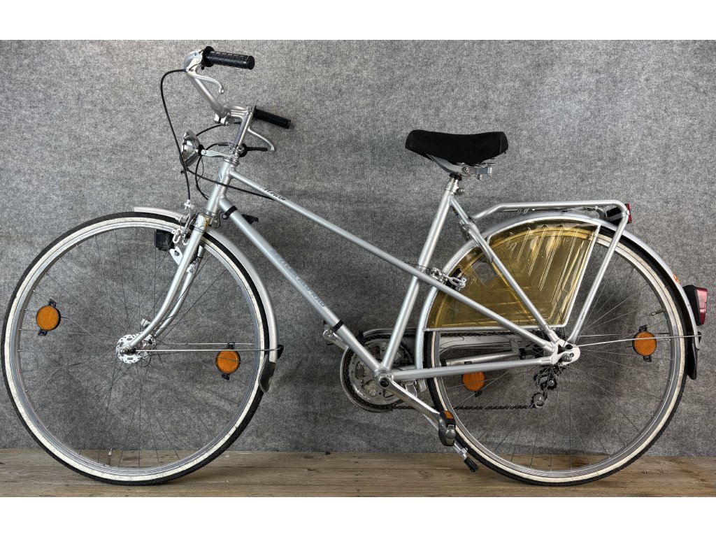 Kettler Alu Rad 28-as kerékméretű, alumínium vázas, hatsebességes váltóval, patkófékkel, dinamós világítással, sárvédővel, csomagtartóval szerelt city kerékpár