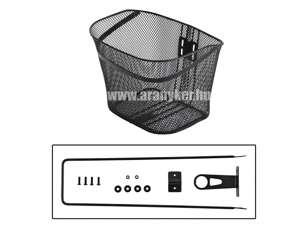 Kosár első, 26"-28" sűrűszövésű, fixre szerelhető, tartozékokkal.