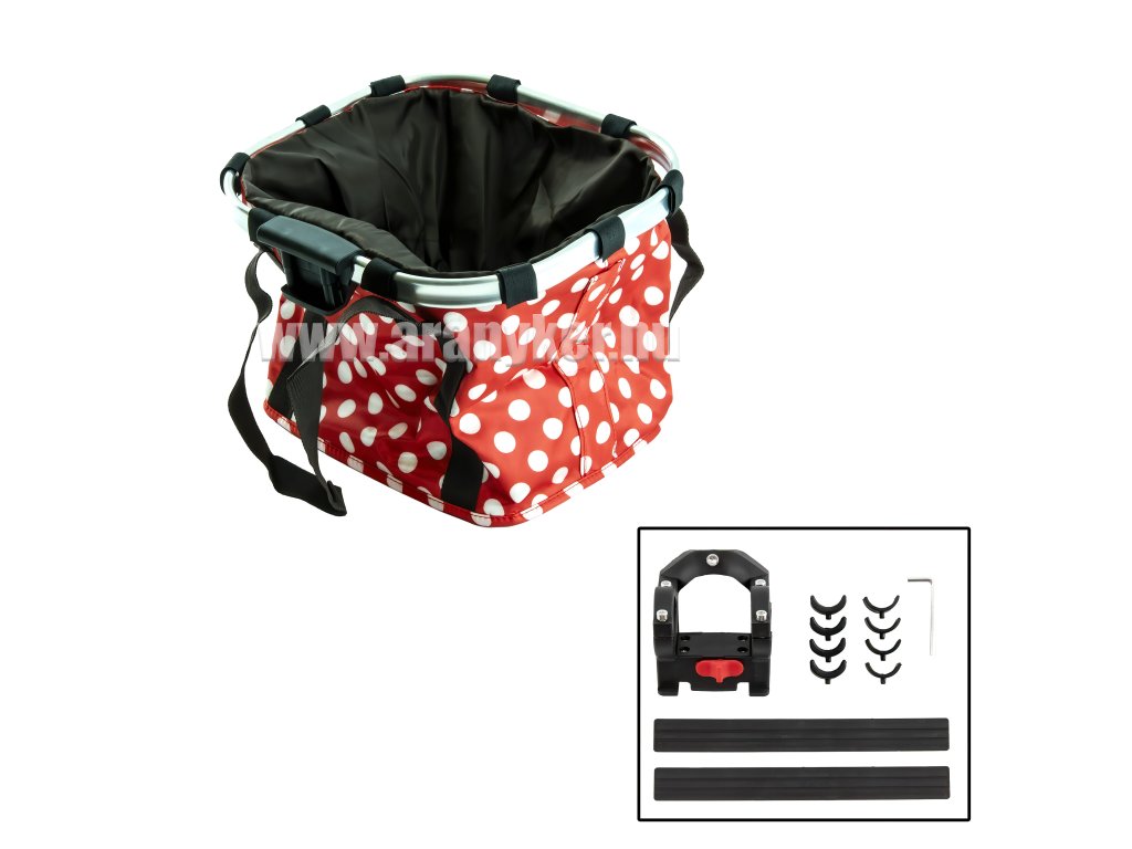 Kosár első, adapteres pöttyös, alumínium keretben textil
