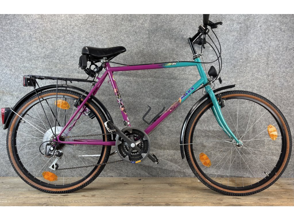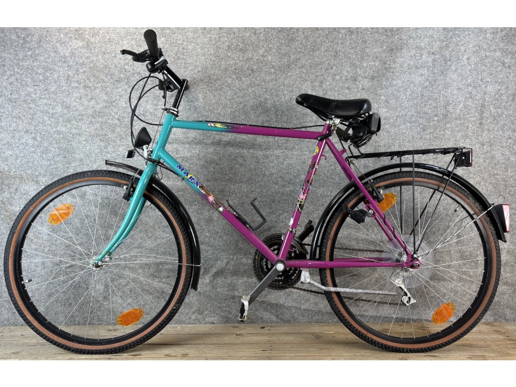 Mars Rainbow 26-os kerékméretű, acél vázas, Shimano 100GS 3 x 7 sebességes váltóval, elől-hátul canti fékkel, Shimano hajtóművel, dinamós világítással, csomagtartóval és sárvédővel szerelt city kerékpár.