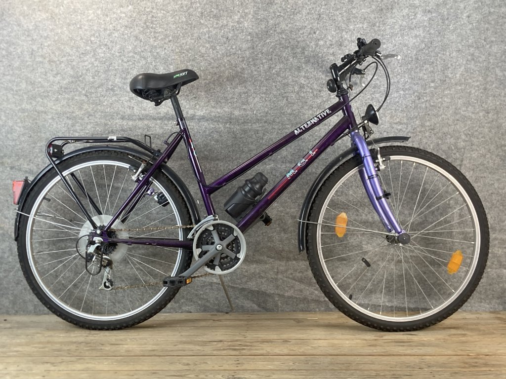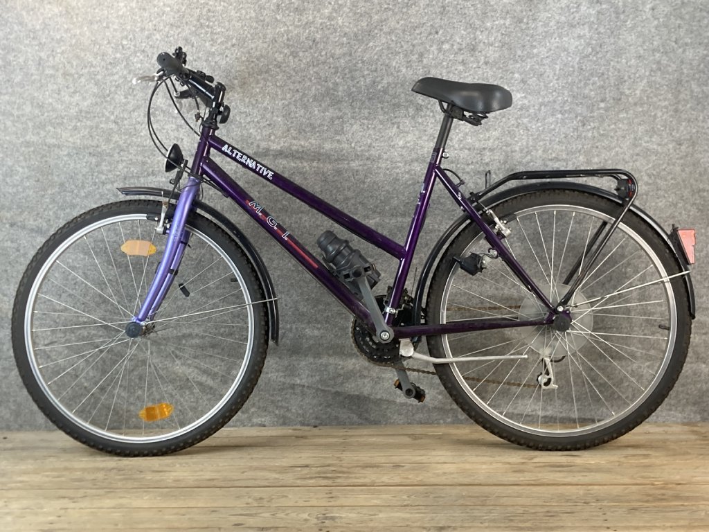 MGI Alternative 26-os kerékméretű, acél vázas, Shimano SIS 3 x 6 sebességes váltóval, elől-hátul canti fékkel, dinamós világítással, sárvédővel csomagtartóval szerelt mountain bike kerékpár.