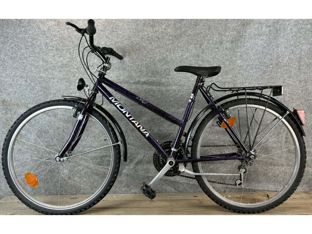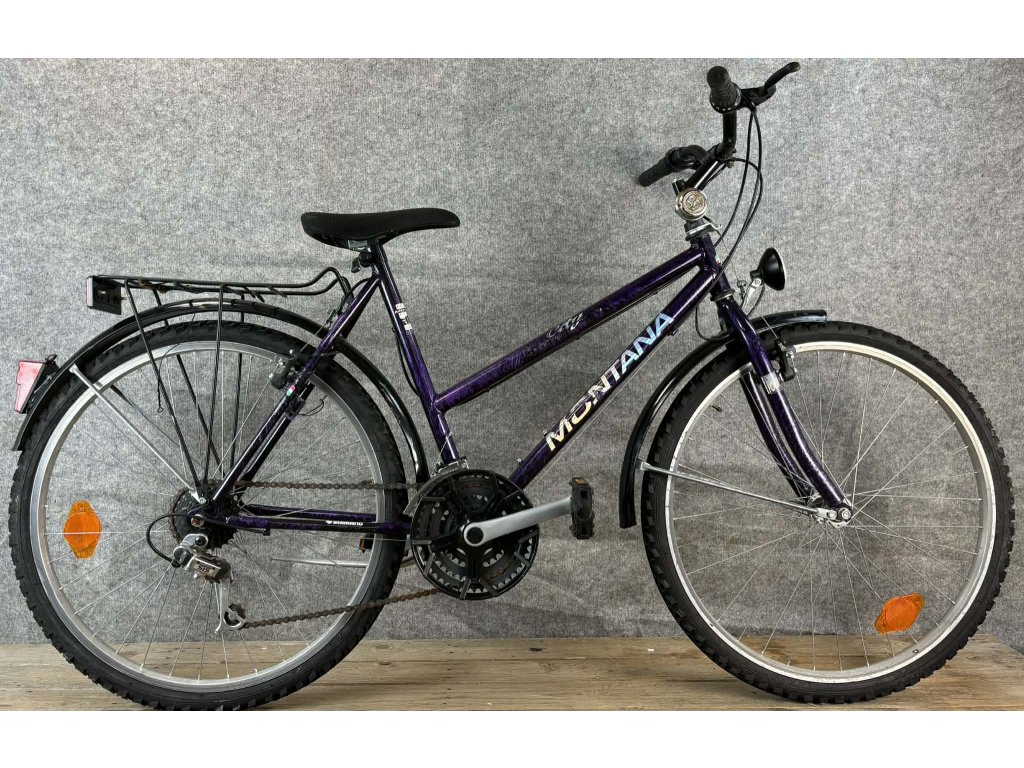 Montana 26-os kerékméretű, acél vázas, Shimano SIS 3 x 6 sebességes váltóval, elől- hátul cantifékkel, dinamós világítással, sárvédővel, csomagtartóval szerelt city kerékpár.
