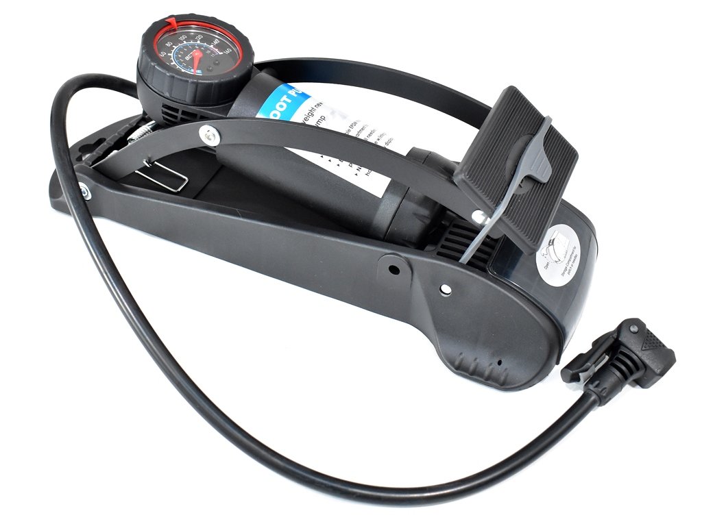 Műhelypumpa, nyomásmérős, láb működtetésű, acél