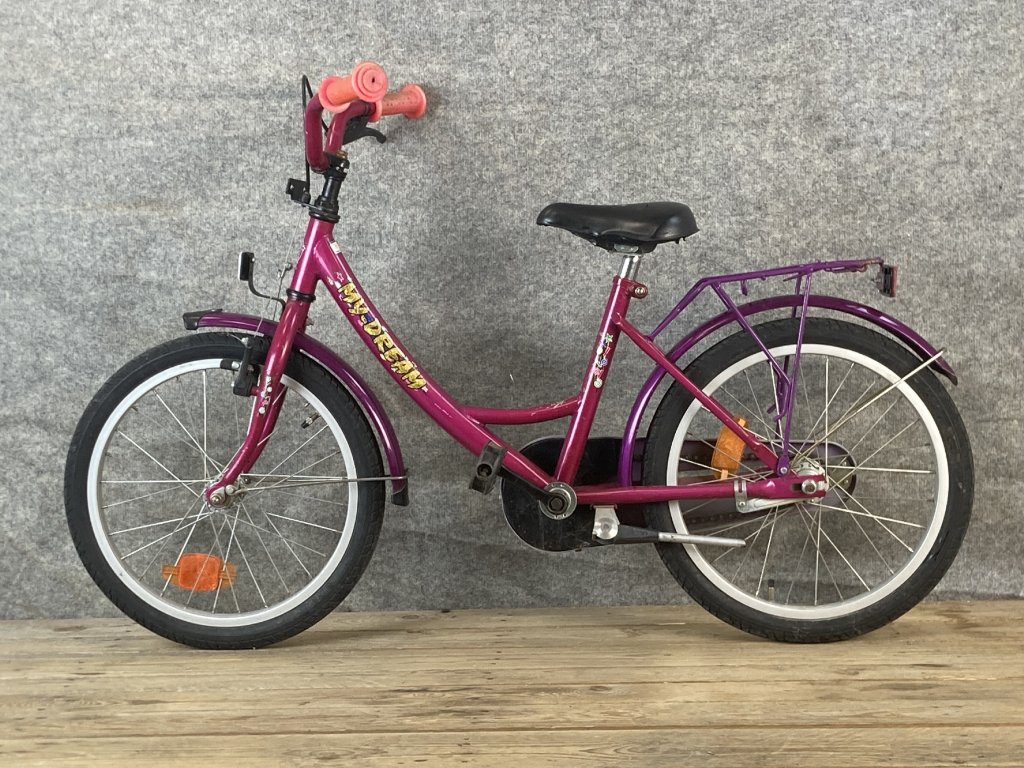 My Dream 18-as kerékméretű, egysebességes, hátul kontrafékkel, elől canti fékkel, sárvédővel, csomagtartóval szerelt gyerekkerékpár.