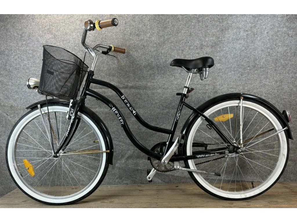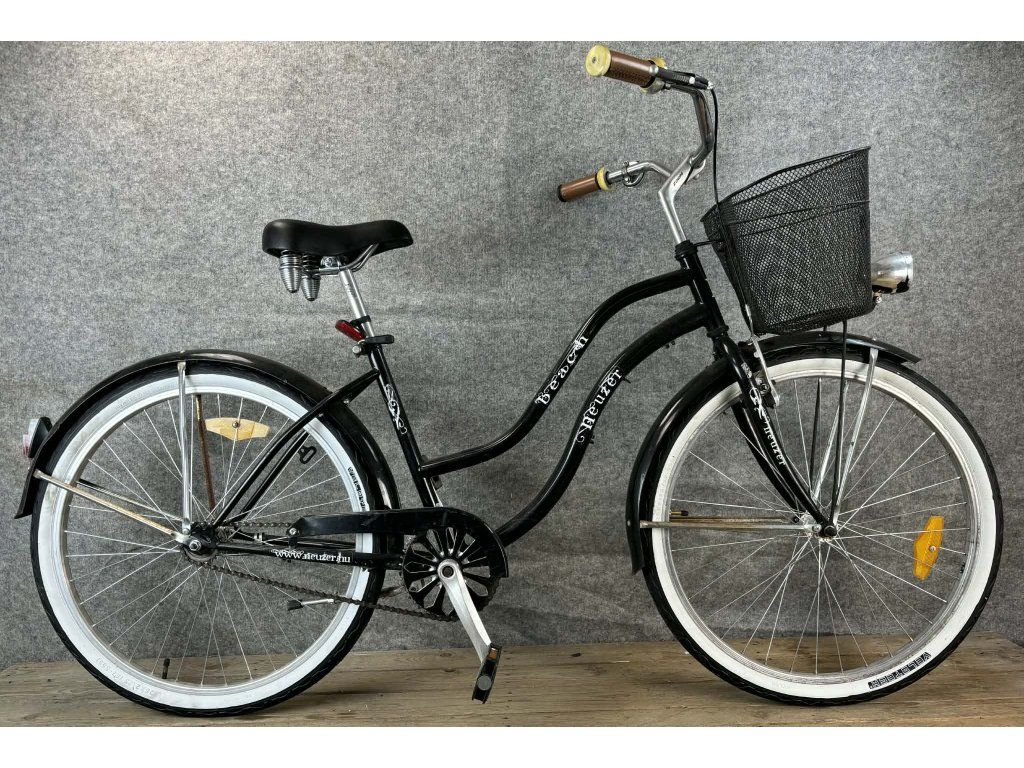 Neuzer Beach 28-as kerékméretű, acél vázas, egysebességes, elől "V" fékkel, hátul kontrafékkel, elemes világítással, sárvédővel, csomagtartóval és kosárral szerelt city kerékpár.