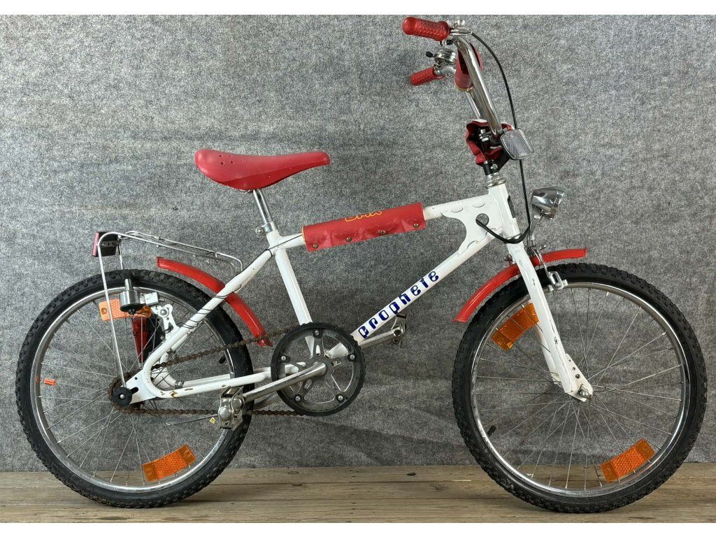 Prophete BMX 20-as kerékméretű, acél vázas, egysebességes, elől-hátul patkófékkel, dinamós világítással, sárvédővel és csomagtartóval szerelt gyermekkerékpár.