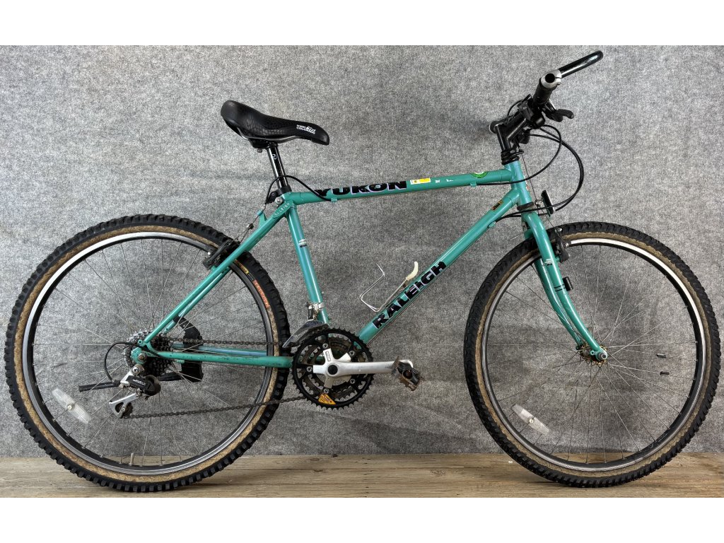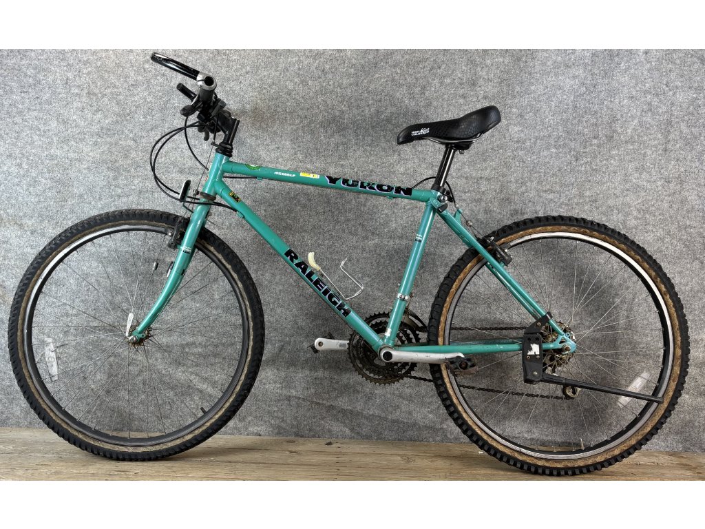 Raleigh Yukon 26-os kerékméretű, acél vázas, Exage 300 LX 3 x 7 sebességes váltóval, elől- hátul canti fékkel szerelt mountain bike.