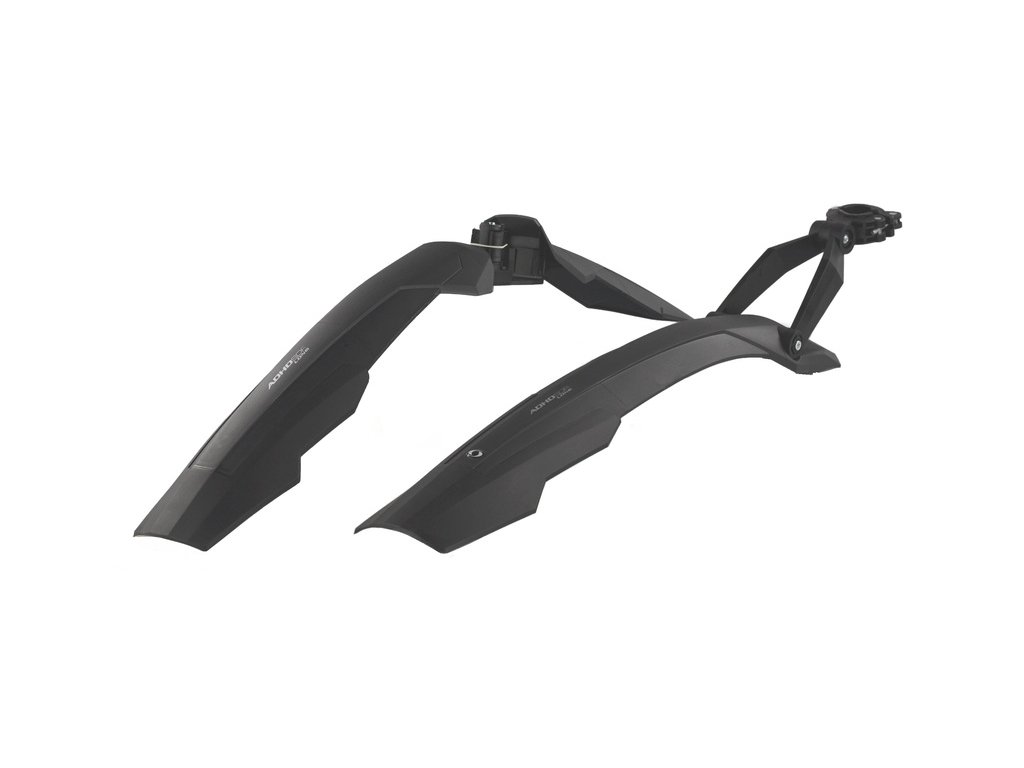 Két komponensű (műanyag alap és gumi sárfogó vég) sárvédő szett.