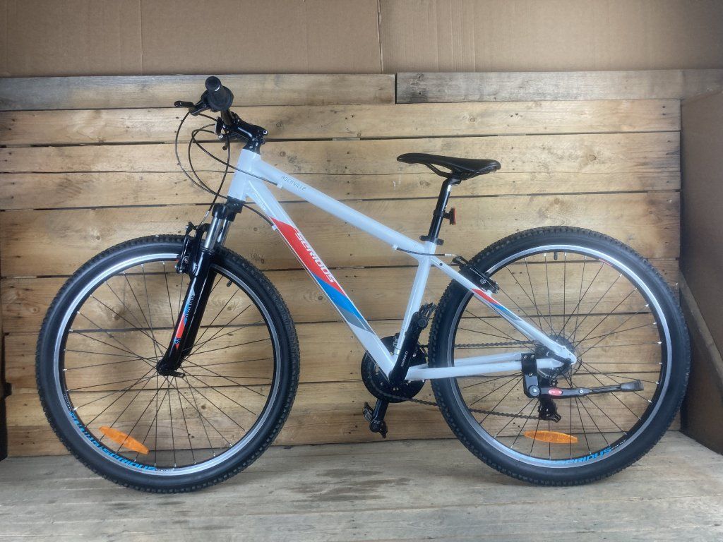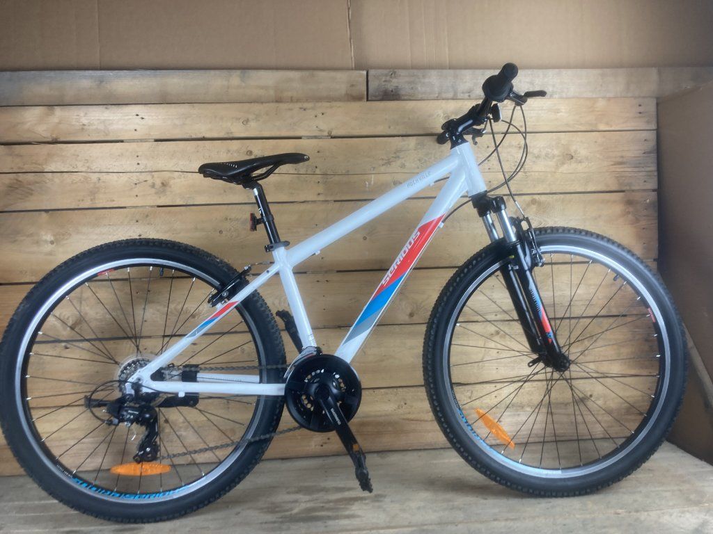 Serious Rockville 27.5-ös kerékméretű, alumínium vázas, Shimano Tourney 3 x 7 sebességes váltóval, elől-hátul "V" fékkel, erősített kerekekkel, teleszkópos első villával szerelt megkímélt állapotú mountain bike.