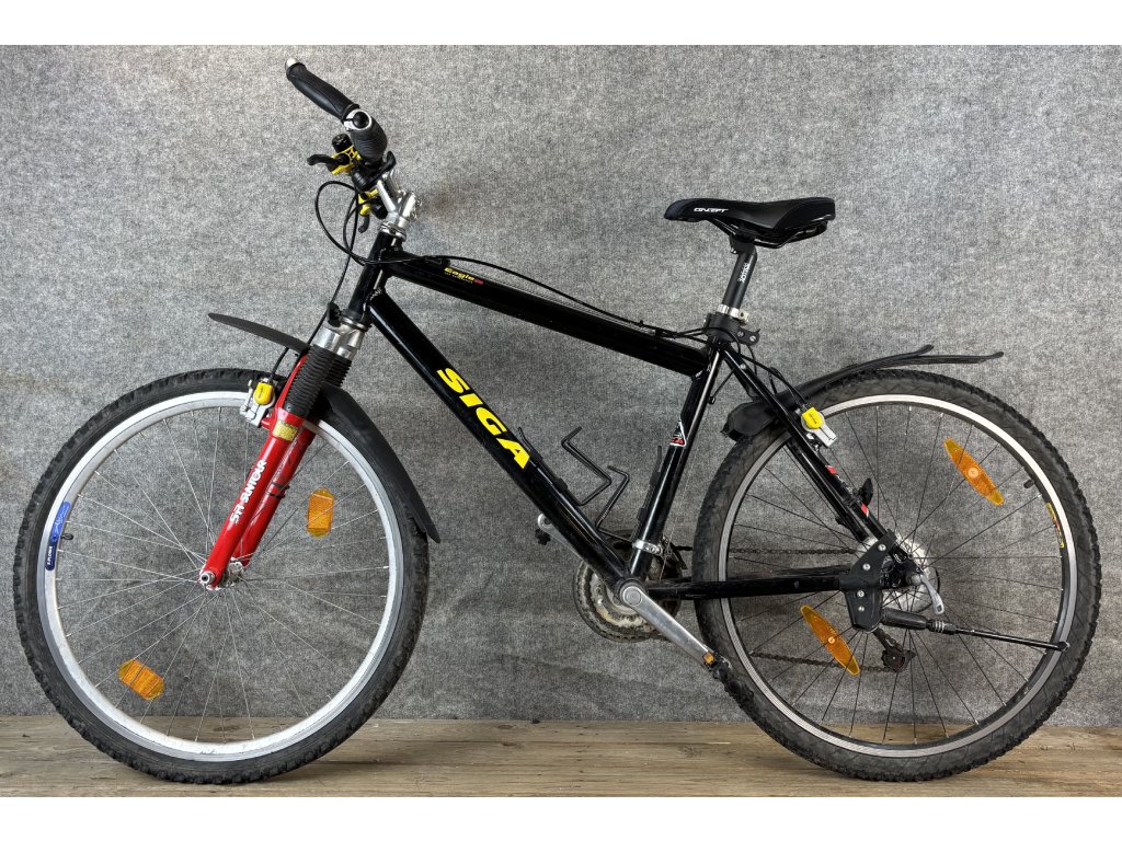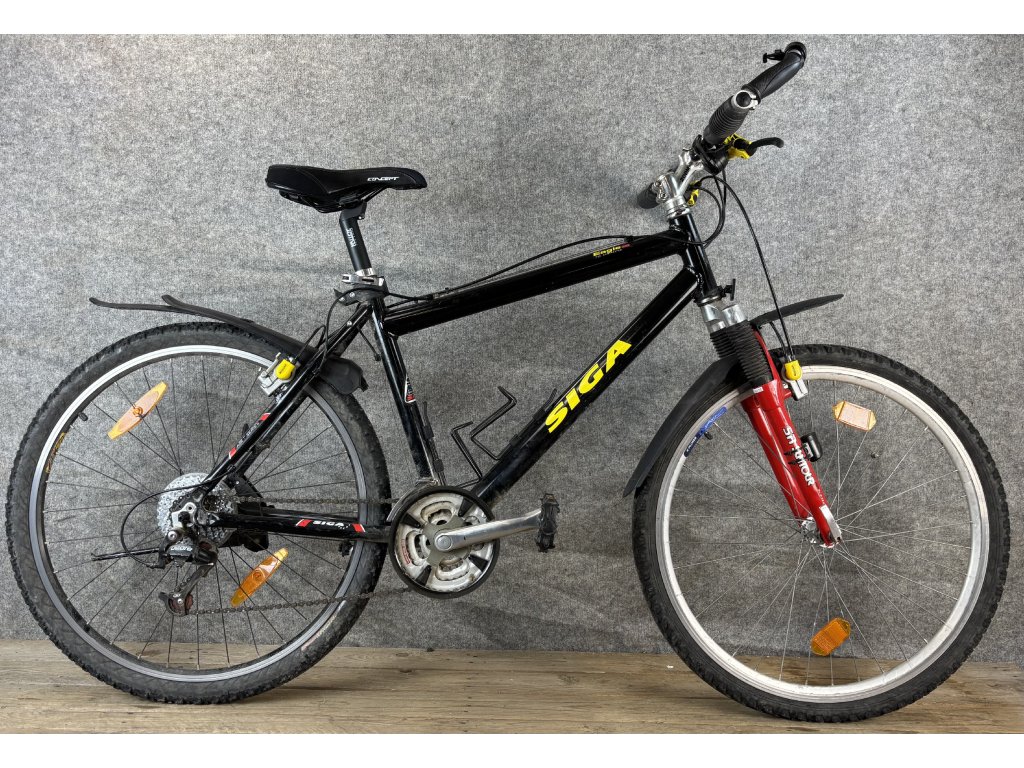 Siga Eagle 26-os kerékméretű, alumínium vázas, Shimano Deore 3 x 7 sebességes váltóval, magura hidraulikus felnifékkel, Shimano hajtóművel, teleszkópos első villával, sárvédővel szerelt mountain bike