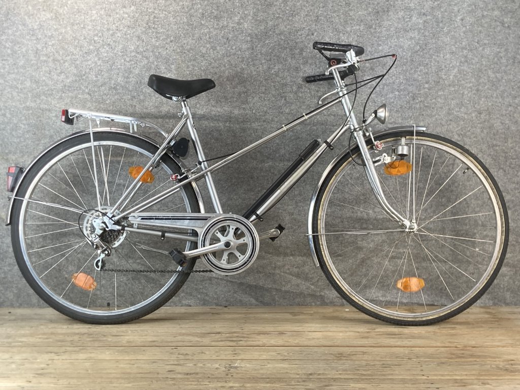Silver City 28-as kerékméretű, acél vázas, 5 sebességes láncváltóval, elől-hátul patkó fékkel, dinamós világítással, elől-hátul sárvédővel és csomagtartóval szerelt városi kerékpár.