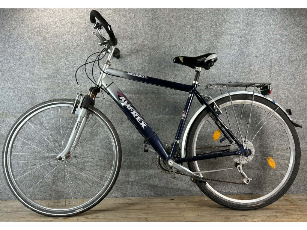 Silverstreet 28-as kerékméretű, alumínium vázas, Shimano SIS 3 x 7 sebességes váltóval, elől-hátul "V" fékkel, Shimano hajtóművel, sárvédővel és csomagtartóval szerelt trekking kerékpár.