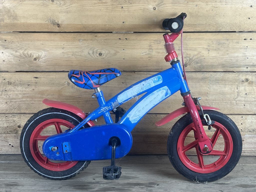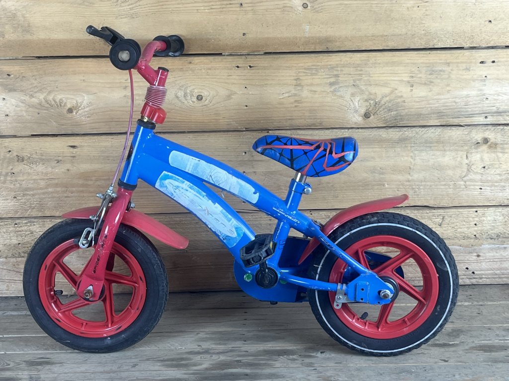 Spiderman 18-as kerékméretű, acél vázas, egysebességes, patkófékkel, elől-hátul sárvédővel szerelt gyerekkerékpár.