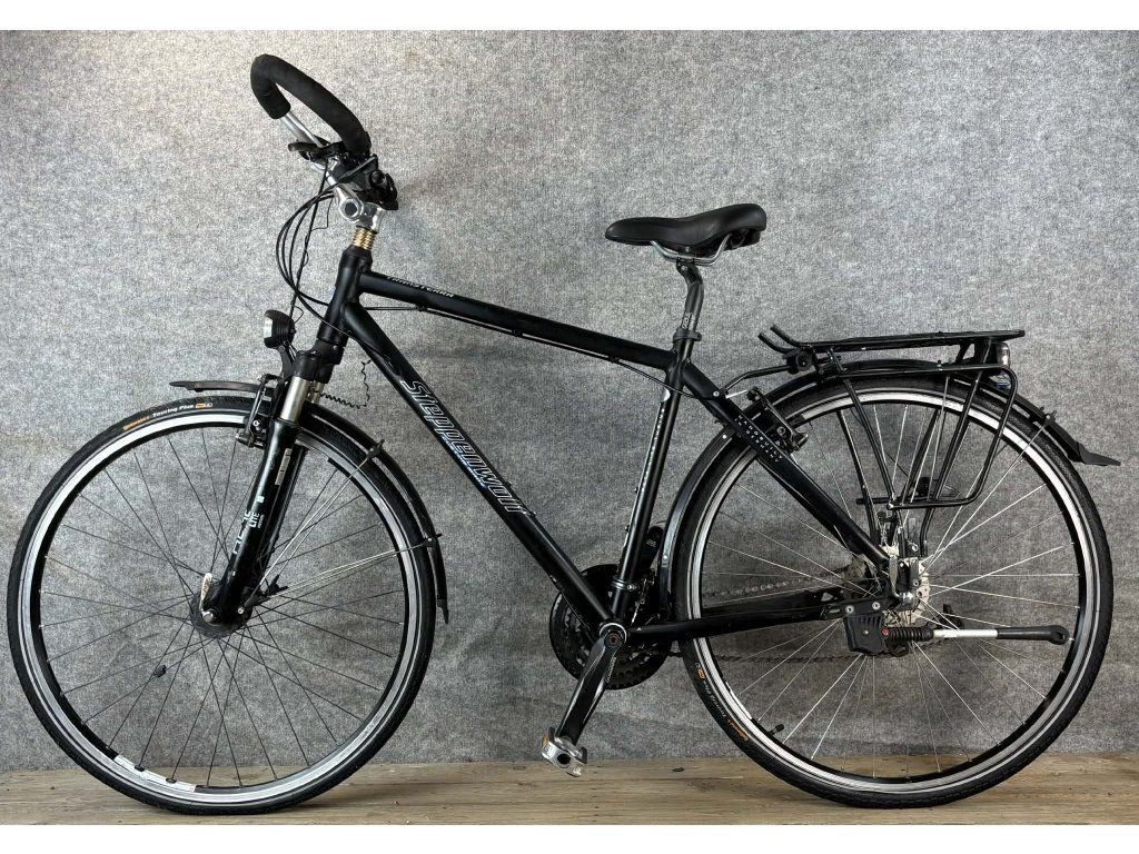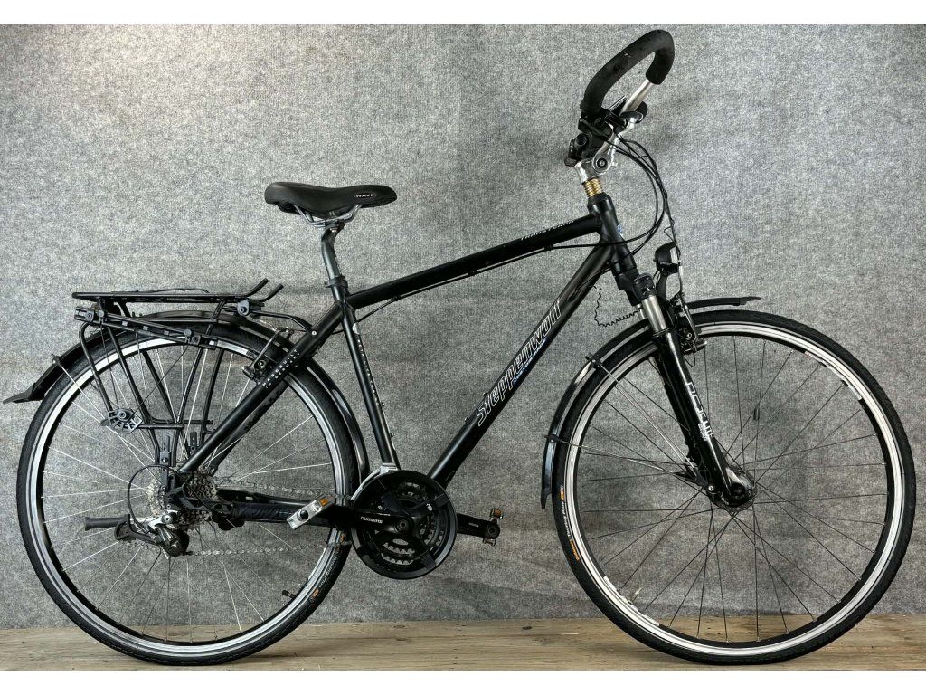Steppenwolf Transterra 28-as kerékméretű, alumínium vázas, Shimano Deore 3 x 8 sebességes váltóval, elől-hátul "V" fékkel, agydinamós világítással Shimano hajtóművel és elől-hátul sárvédővel és csomagtartóval szerelt cross trekking kerékpár.