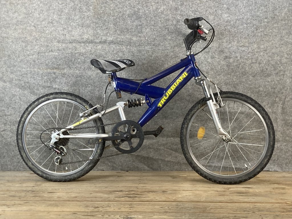 Trubbiani 20-as kerékméretű, acél vázas, összteleszkópos, Shimano 1 x 6 sebességes váltóval, elől- hátul "V" fékkel szerelt gyerek mountain bike