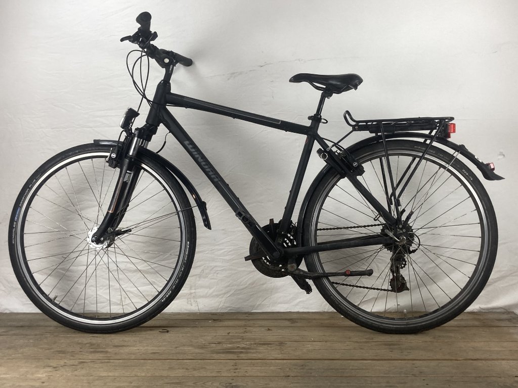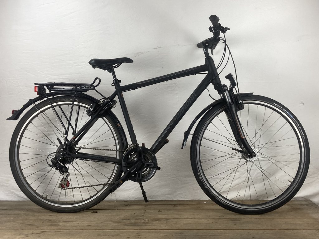 Winora Jamaica 4.2 HS 28-as kerékméretű, alumínium vázas, Shimano Tourney 3 x 8 sebességes váltóval, Magura hidraulikus felnifékkel, teleszkópos első villával, Shimano hajtóművel, agydinamós világítással, erősített kerekekkel, rugós üléscsővel, állítható kormánybefogóval, sárvédővel, csomagtartóval szerelt trekking kerékpár.
